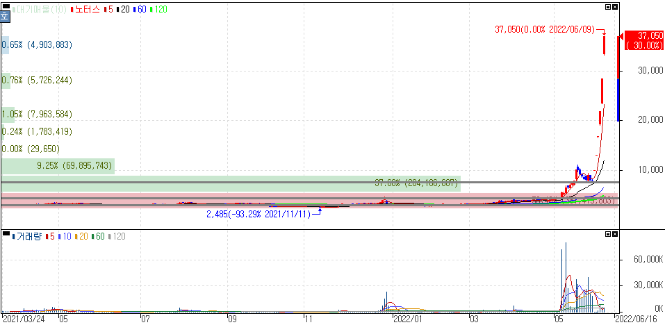 상한가를 기록하는 노터스에 대해서 이야기 할 때마다 상한가 이전의 흐름에 대해서 자주 말씀드려왔는데요. 우리가 상한가 종목을 주로 확인해 보는 것처럼 노터스 주가가 어떻게 전개되어 상한가를 기록하게 됐는지를 복기 하는게 좋다고 말씀드렸죠.