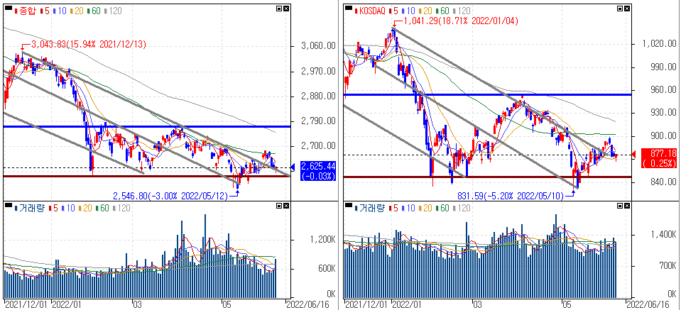 금일 코스피 지수는 -0.03% 하락한 2,625.44에 마감하였고, 코스닥 지수는 +0.25% 상승한 877.18에 마감하였습니다. 선물옵션 동시만기일(네마녀의날) 증시 변동성을 보였습니다.