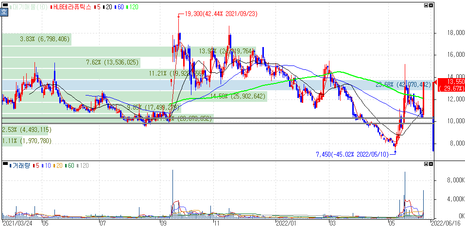 2022년 6월 9일 오늘의 상한가 종목 및 이유 :: 쌍방울그룹 KG그룹주 HLB테라퓨틱스 주가 외