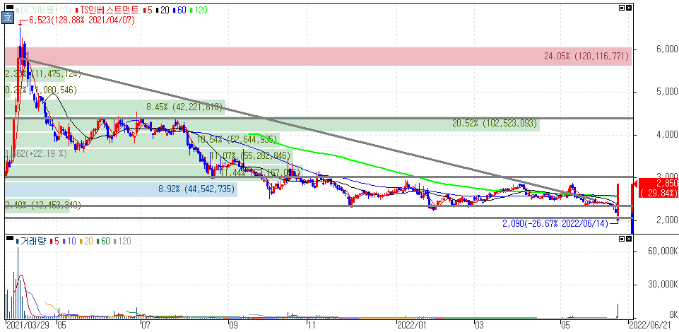 TS인베스트먼트는 다른 창투사 업종에 비해 워낙 거래량이 적은 모습을 보이며 수급에 부족함을 보여왔었는데요. 이번 상한가를 기준으로 새로운 구간이 형성되면서 추세 전환까지 어이지는지에 대한 관점을 두고 확인해 볼 수 있습니다.
