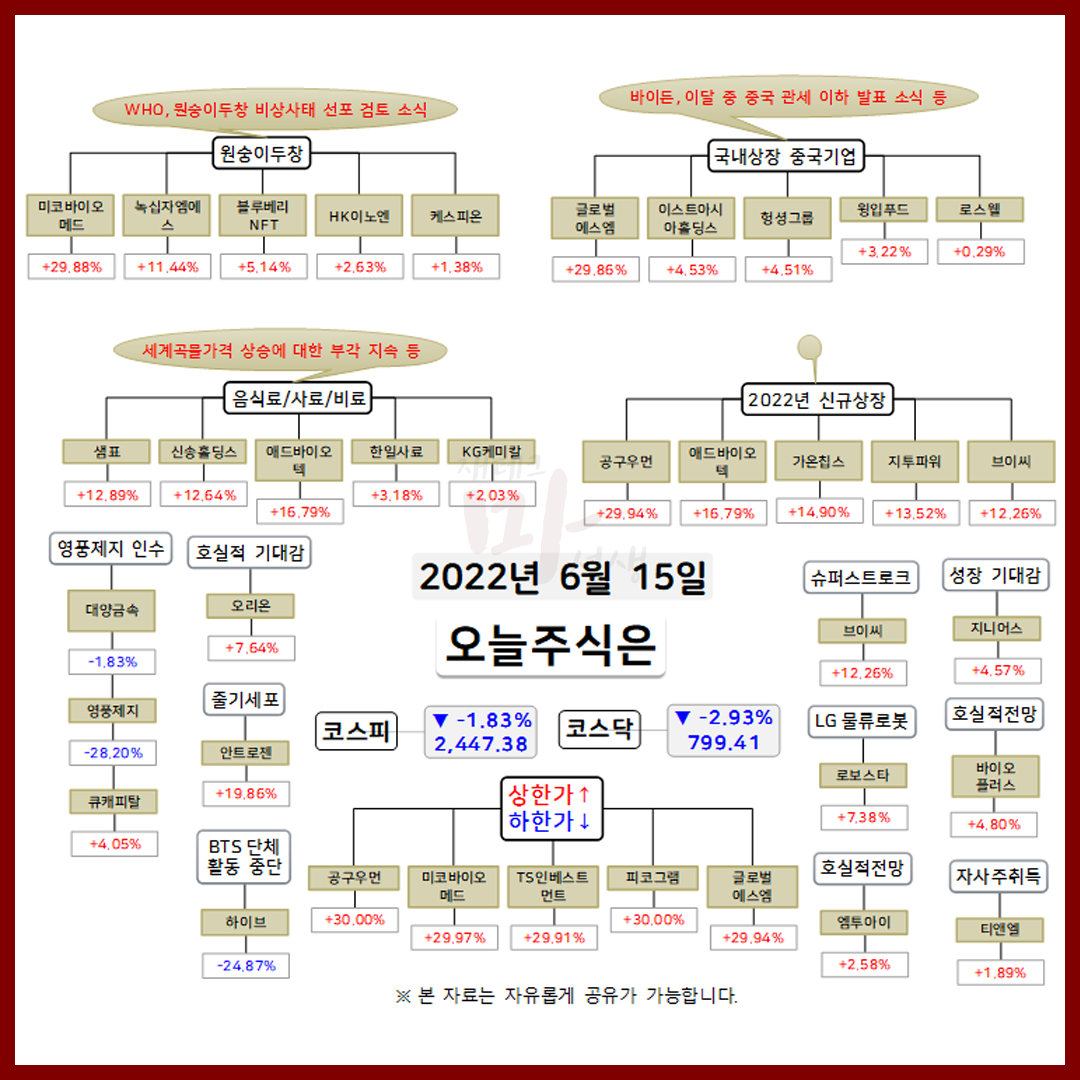2022년 6월 15일 오늘의 상한가 종목 및 이유 :: 미코바이오메드 피코그램 TS인베스트먼트 글로벌에스엠 주가 외 지난 뉴욕증시는 Fed 자이언트스텝 우려 지속 속 혼조 마감을 했는데요. 다우 지수