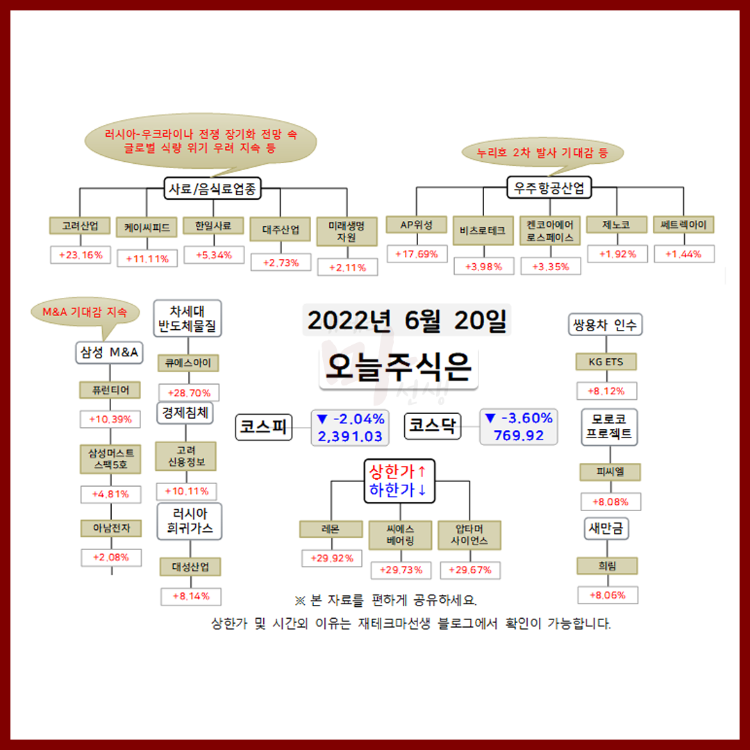 2022년 6월 20일 시간외 상승종목 상한가 및 이유 :: 효성오앤비 누보 씨아이에스 미래생명자원 주가 외
