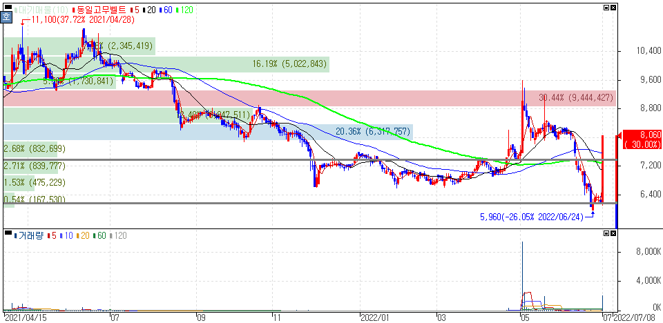 2022년 7월 1일 오늘의 상한가 종목 및 이유 :: 동일공무벨트, 정원엔시스 주가 외