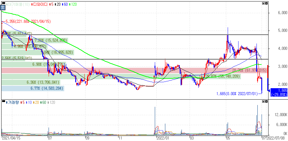 아직 구체적으로 어떤 사유인지를 확인해야겠지만 추세전환까지 보이며 상승세를 보이던 상황에서 지난달부터 급락을 보였습니다.
