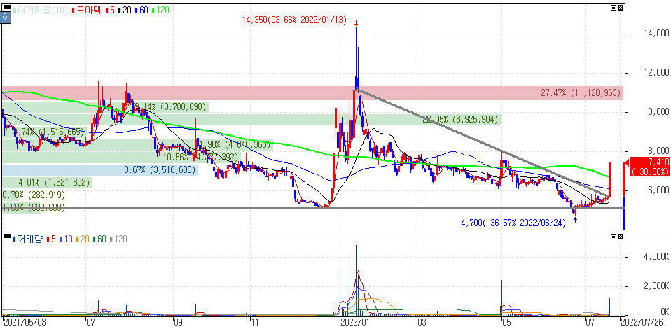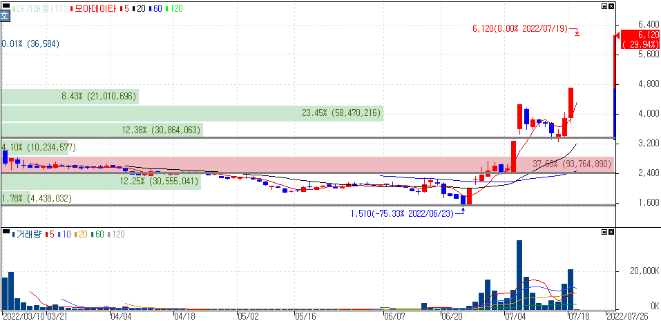 2022년 7월 19일 오늘의 상한가 종목 및 이유 :: 양지사 모비릭스 모아텍 모아데이타 주가 외