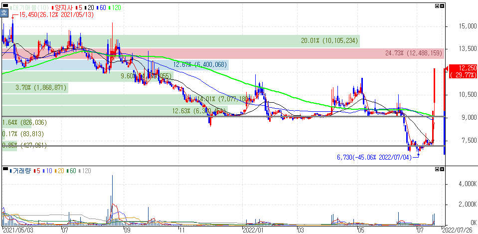 대부분 최근 상한가를 기록한 종목들은 구간을 형성하면서 기간조정을 받았던 종목들이 많은데 증시의 악화로 인한 시세 하락을 받은 이후 반등을 보이며 상승을 보인 종목들이 많습니다.