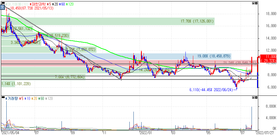 게다가 대한과학 같은 경우 '콜드체인'으로 코로나19 백신 콜드체인으로 부각을 받았던 바 있었던 종목이기도 하죠. 여전히 코로나19 확진자 수가 증가세를 보이고 있는 전반적인 '제약바이오주' 종목들의 확인은 유효합니다.