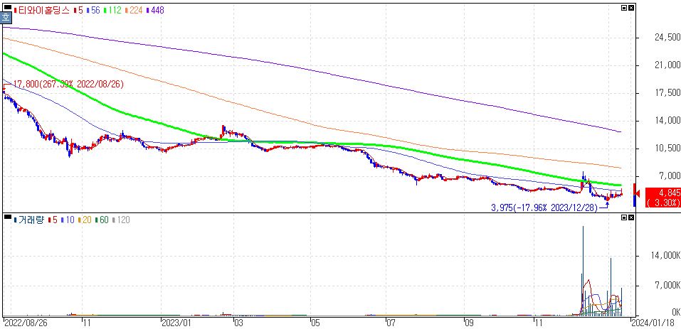 물론 현재 태영건설 주가는 지난 12월 28일 워크아웃을 신청하면서 반등을 보였고, 그 이후로도 태영건설의 워크아웃 개시 전망은 이미 깔려있었던 상황이였고, 오늘 태영건설 워크아웃이 개시되었습니다.