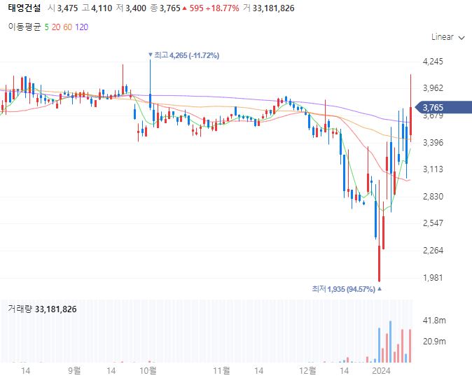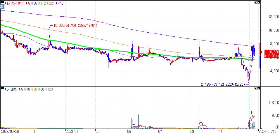 물론 현재 태영건설 주가는 지난 12월 28일 워크아웃을 신청하면서 반등을 보였고, 그 이후로도 태영건설의 워크아웃 개시 전망은 이미 깔려있었던 상황이였고, 오늘 태영건설 워크아웃이 개시되었습니다.