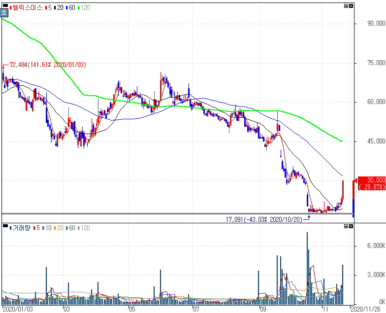 개인적으로는 헬릭스미스는 에피소드가 있는 종목이기도 합니다. 지난 2019년 고점 부근에서 매도 필요로 했던 시기라 기재했었던 자료들이 있었는데 헬릭스미스 주주들이 항의하기까지도 했죠. 제가 주가를 떨어뜨린것도 아니고, 단지 빠질 자리였을 뿐인데 말이죠. 아무튼 간만에 상한가를 기록한 헬릭스미스가 예전 전성기 때로 돌아올 수 있을지 응원합니다.