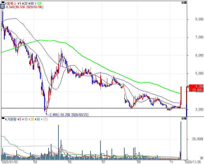 필룩스는 2018년이였나요? 큰 상승으로 상당한 인기종목 중 하나였는데 개인적으로는 공시만 훑어보면 찝찝하니 접근하고 싶지 않은 종목이기도 했습니다. 그리고 역배열 속에서 장기간 신경쓰면서 봤어야 할 종목이기도 하니까요. 일단 이번 상한가를 기록하면서 완전히 추세전환으로 자리를 잡으게 될지를 주목해봅니다.