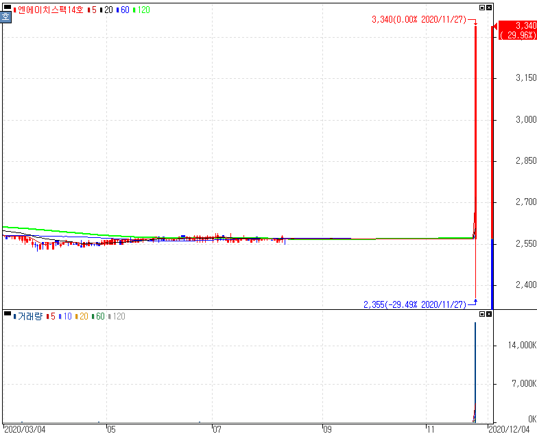 현대무벡스 주식회사와 합병 승인 속 거래재개 첫날 상한가를 기록한 엔에이치스팩14호 주가 입니다. 물류자동화, 승강장안전문(PSD),IT서비스업체인 현대무벡스 주식회사와의 합병 결정을 하면서 그동안 거래가 정지됐던 엔에이치스팩14호의 주권매매거래가 전일 한국거래소의 상장예비심사 승인에 따라 오늘 재개 첫날 상한가 입니다. 스팩주 좋죠. 스팩주는 정보싸움도 필요로 하지만 기술적인 접근도 다소 충분히 가능합니다. 다만 타이밍을 잘 못 잡게 된다면 긴 시간을 투자해야 하는 경우가 있기 때문에 꼭 시장 분위기를 보지 않더라도 주기적으로 관련 스팩주 종목들을 살펴보는 것도 좋습니다. 그러나 스팩주가 무조건 호재만 있을 것이라고만 생각은 금물입니다.