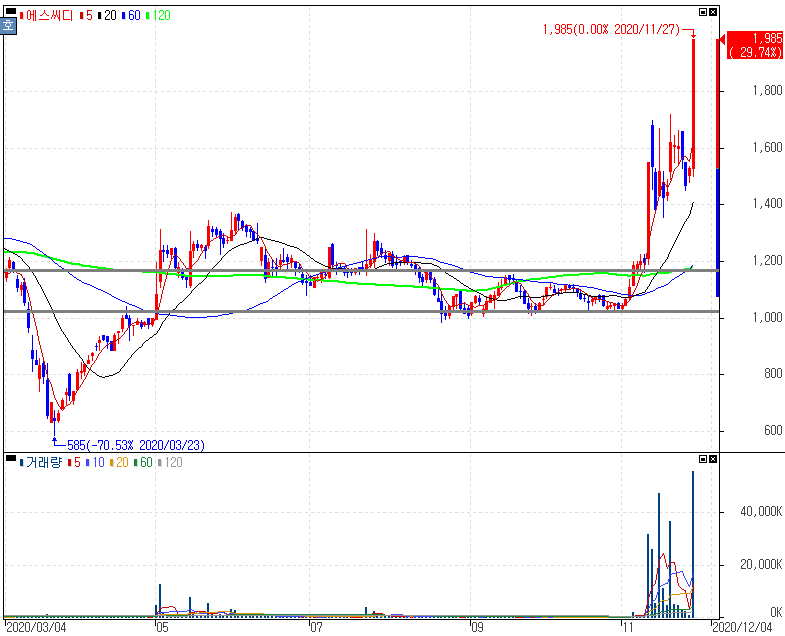 세계 1위 냉매밸브 부각에 상한가를 기록한 에스씨디 주가 입니다. 미국 트럼프 대통령이 코로나19 백신 유통이 다음주 또는 그 다음주 시작된다고 발표하면서 저온유통체계인 콜드체인의 중요성으로 세계 1위 냉매밸브 업체 에스씨디가 부각을 보였습니다. 추세 전환 이후 지지구간에서 추가 반등을 보여준 모습입니다. 대표적으로 수급과 추세가 제대로 받쳐준 종목이라 공부하시는 분들은 데이터를 잘 쌓아두시길 바랍니다. 종종 연락 주시는 분들 보면 재테크 마선생 블로그에서 짧게나마 적어드리는 내용으로 데이터를 쌓으시는 분이 계시더라구요. 데이터는 본인의 값진 결과를 준다는 것을 잘 기억하시길 바랍니다.