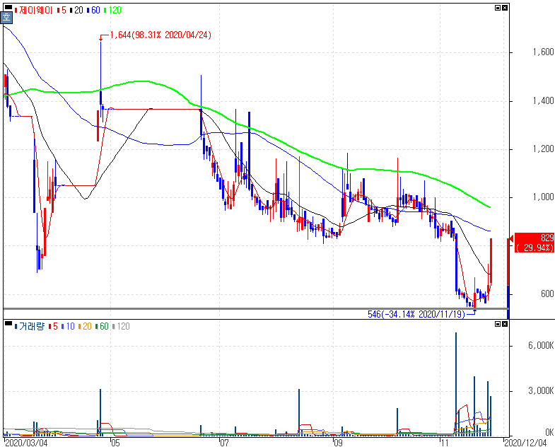 유상증자 정정 공시 속 상한가를 기록한 제이웨이 주가 입니다. 제이웨이 주가 차트만 보더라도 별로 접근하고 싶지 않게 생긴 흐름입니다. 공시까지보면 보기도 싫어 도망가느라 바쁘죠. 최근 대거 매수세가 들어오면서 주목 받는 흐름이 앞으로 보일지라도 좀 더 가치를 생각하면서 극단적이지 않는 투자가 좋기 때문에 변동성에 휘둘리지 않는 방향을 잘 잡는 것이 중요하다는 것을 기억하시길 바랍니다. 그동안 피하길 말씀드린 종목들의 물린 개미들이 상당히 많으니 말이죠.