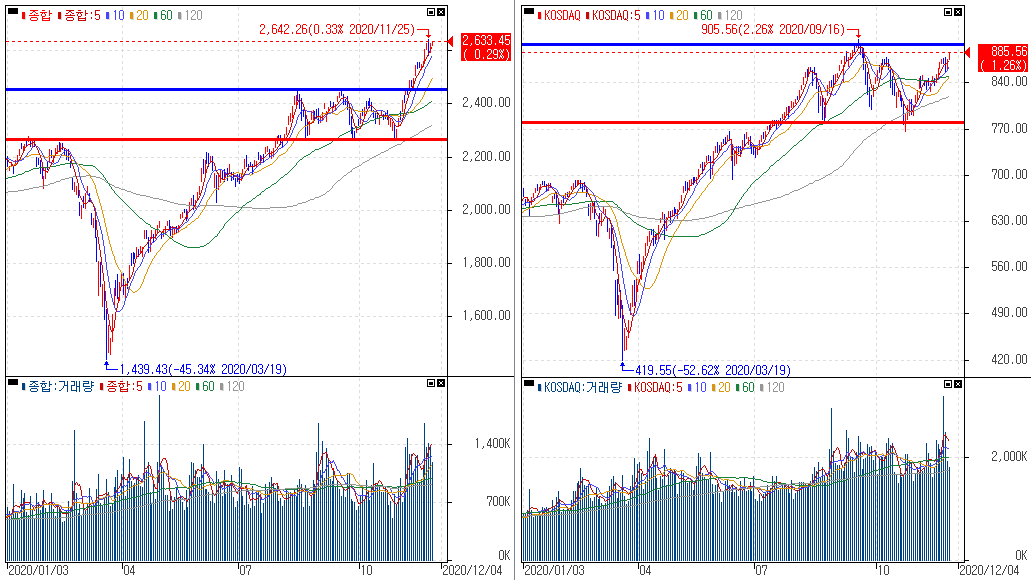금일 코스피 지수는 +0.29% 상승한 2633.45에 마감하였고, 코스닥 지수는 +1.26% 상승한 885.56에 마감하였습니다. 예상보다 코로나19 백신 보급이 빠르게 진행될 분위기 속에 현재 확산세가 잡혀갈 수 있을지, 백신의 효과 등에 대한 부분을 주시하면서 본인의 투자원칙엔 흔들리지 않고 꾸준하게 이어가는 습관이 중요한 시기입니다.