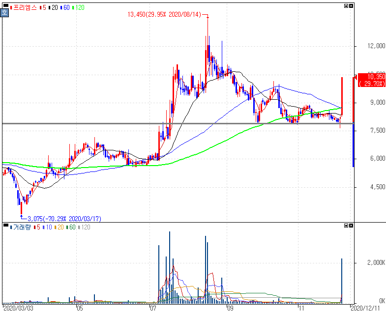 프리엠스 주가 :: 12월 4일 오늘의 상한가 종목