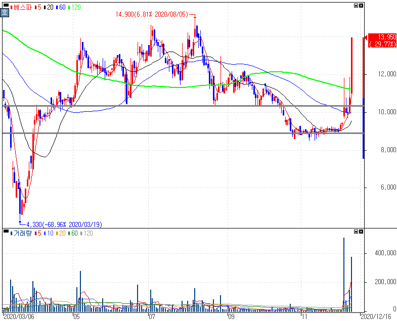 내년 실적 턴어라운드 기대감 등에 상한가를 기록한 베스파 주가 입니다. 내년부터 킹스레이드 매출 회복세와 高 개발비가 투입된 신작들에 대한 출시 기대감으로 기업에 대한 재평가가 이뤄질 것, 올해 3분기 기준 보유중인 금융상품들은 대부분 원금보장형 상품으로써 현금 및 현금자산까지 감안했을 때 재무적인 리스크는 크지 않으며, 신작 출시 일정이 내년으로 지연됨에 따라 주가에 반영할 수 있는 악재는 모두 반영된 것으로 SK증권이 분석을 내놓았습니다. 사실 증권사에서 내놓는 부분에 대해서는 참고만 하지만 이런 자료들을 하나씩 잘 모아두면 본인의 종목발굴에 분명한 도움이 되는 자료들입니다. 즉, 증권사에서 말하는 종목이 100% 간다는 것이 아니라, 이러한 자료들을 바탕으로 내가 적절한 타이밍을 잡는 것이 중요합니다.