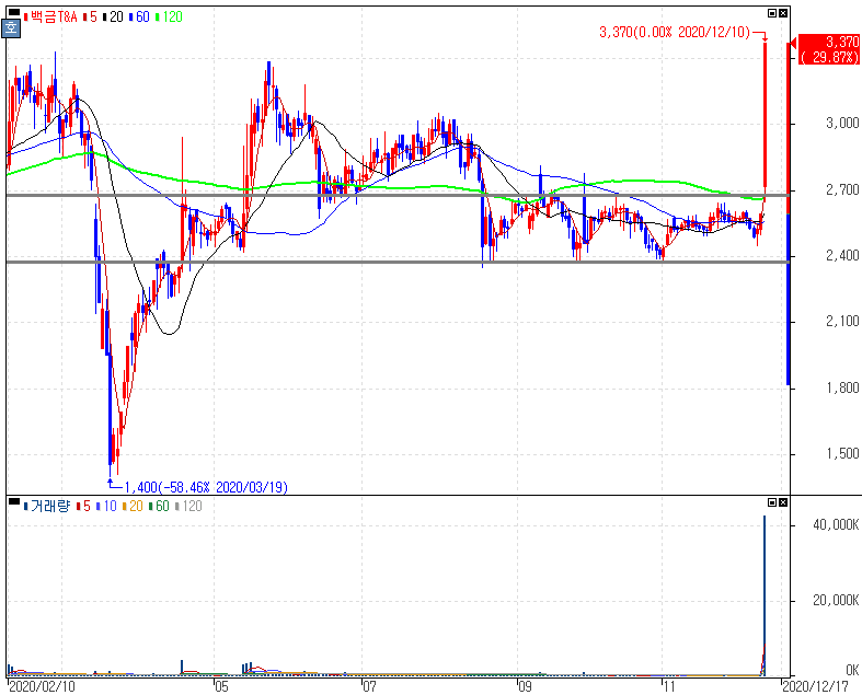 백금T&A 주가 :: 12월 10일 오늘의 상한가 종목