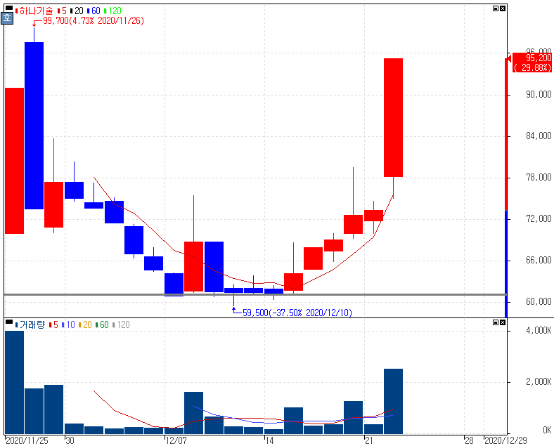 해외 고객사향 수주 증가 전망 등에 상한가를 기록한 하나기술 주가 입니다. 증권사에서 2차전지의 제조공정 전체에 대한 장비 포트폴리오를 보유한 업체라는 것을 분석하면서 특정 장비를 별도 공급받기보다 생산라인의 전체를 공급 받는 구조를 선호한다 것으로 한화투자증권은 의견을 내놓았습니다. 증권사에서 분석해놓는 종목은 당장 매매하기보다는 분석내용을 토대로 참고해 본인의 투자에 적절한 타이밍을 보는 것이 더 효과적입니다.