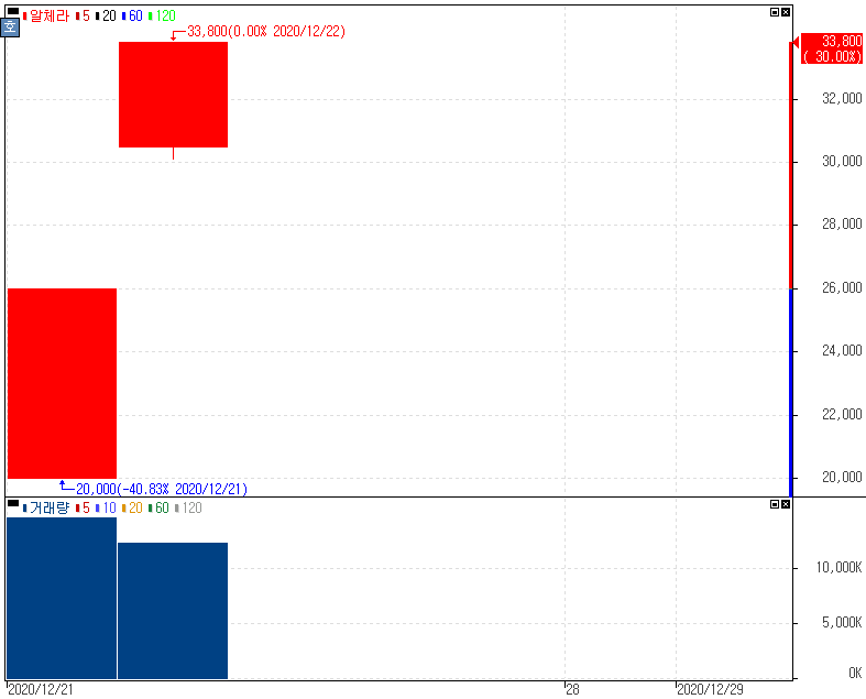 신규상장 이틀째 상한가를 기록한 알체라 주가 입니다. 어제 알체라와 같은 신규상장 종목은 지난 미국 대선 이후 신규상장 종목의 양호한 흐름과 기업이 가지고 있는 전망에 대해서 언급해드리면서 연일 상한가를 보이는 모습입니다. 이미 이틀연속 상한가를 기록하고 있지만 처음 종목에 접근할 당시에는 다양한 분석과 안정적인 매매타이밍을 반드시 생각해야한다는 것은 놓치지 마시길 바랍니다.