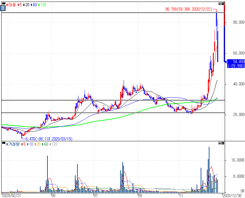 변종 코로나19 소식에 이어 제약·바이오주 하락 속 하한가를 기록한 대웅, 대웅제약, 현대바이오 주가 입니다. 대웅, 대웅제약은 코로나19 치료제 개발 중인 카모스타트메실레이트 성분의 '호이스타정'이 임상 2a상 주평가변수의 통계적 유의성을 확보하는데 실패하였으나 위약군보다 더 빠른 바이러스 제거에 코로나19 치료제로 가능성 확인하면서 임상2/3상 시험을 이어 나갈 것이라고 밝혔습니다. 당초 임상 2상 톱라인 결과라해서 뚜렷한 결과를 보일 것으로 보였으나 카모스타스의 방향은 임상 2/3상으로 방향이 보여지고 있습니다. 현대바이오에서는 씨앤팜과 공동으로 진행중인 코로나19 경구 치료제에 이어 코로나19 중증환자 전용 주사제를 개발한다는 소식이 나옴에도 불구하고 '변종 코로나19'에 따르는 우려가 제약바이오주의 약세 영향을 보여준 것이 아닌가라는 의견들이 있습니다.