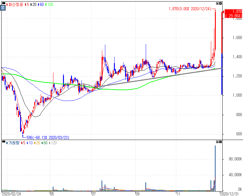 자동차부품 모멘텀으로 상한가를 기록한 화신정공 주가 입니다. 화신정공은 국내 완성차업체와 그 계열사에 자동차용 샤시부품, 정밀가공부품, 보수용부품 등을 생산해 납품하는 업체입니다. 테슬라, 제니시스(현대기아) 등 단순 자동차 부품을 넘어서 미래차와의 연관성을 깊이 볼 수 있는 부분이기도 합니다. 지난 10월과 이번주를 비롯해 말씀드렸던 부분으로 자동차부품주에 흐름 이처럼 튀어오른다는 것을 알 수 있습니다. 게다가 추세와 수급이 완전했다는 부분을 고려해 재료와 함께 3박자를 볼 수 있는 화신정공입니다.