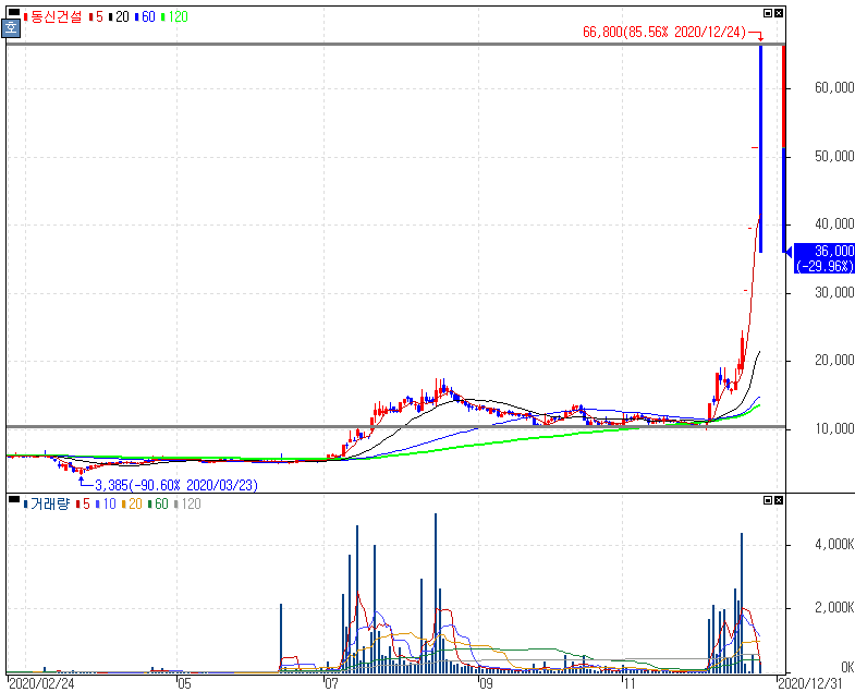 거래재개 상한가 출발 후 하한가를 기록한 동신건설 주가 입니다. 이재명 경기도지사 고향인 안동 소재라는 이유로 동신건설이 이재명 테마주로 큰 상승세를 보였습니다. 그러나 오늘 거래재개 상한가로 출발했으나 하한가로 폭락을 보였는데요. 거래정지 전 상한가를 기록했을 당시 동신건설에 대해서 말씀드렸다시피 주의하신분은 오늘의 폭락에 피해를 보신 분은 안 계실거라 생각합니다.