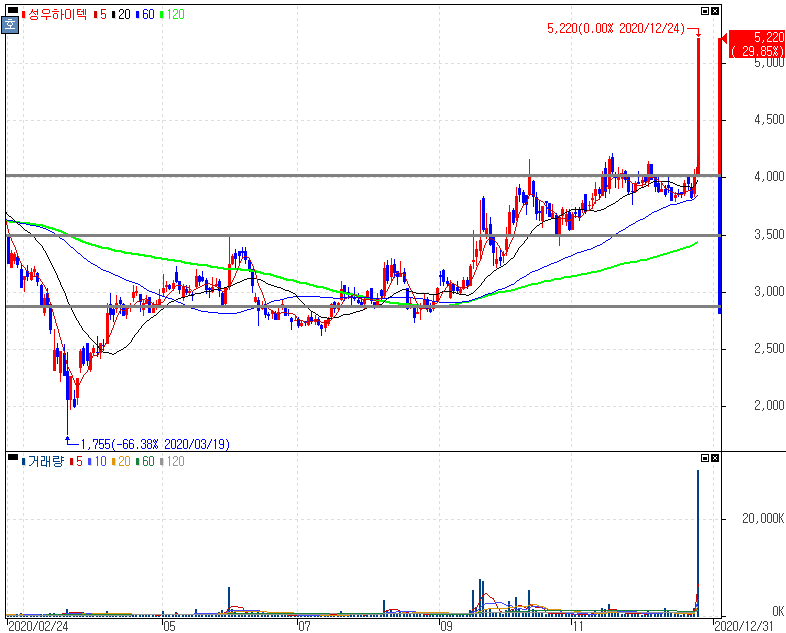 수소차 배터리팩 사업 모멘텀 기대감에 상한가를 기록한 성우하이텍 주가 입니다. 성우하이텍은 지난 2018년 중순 80kWH급 알루미늄 배터리 팩 자체개발을 시작해 내년 중순 유럽으로 공급될 수소 연료전지 트럭의 배터리팩 수주가 해왔다는 점, 2022년 유럽과 북미에 공급될 배터리 모듈을 수주할 LG화학에 양산 공급을 준비하고 있다는 점에서 이번 상한가는 적절한 흐름을 보이고 있다는 것을 알 수 있습니다.