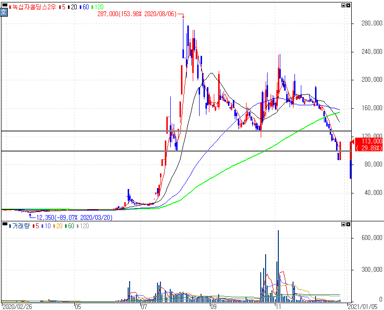 녹십자, 모더나 백신 국내 인허가·유통 전담계약 후보 소식에 상한가를 기록한 녹십자홀딩스2우 주가 입니다. 보도자료가 이렇게 나왔으나 실제 계약 등에 대한 논의를 구체화하지 않은 상황입니다. 녹십자, 삼성바이오로직스, 한미약품, 에스티팜 등이 거론되는 분위기이지만 정확하지 않은 찌라시에 당하는 경우도 있기 때문에 주의할 필요가 있습니다. 하락이 이어지는 상황에서 각 구간에서의 주목해야 할 반등 자리들이 있지만 추가 상승을 보이더라도 본 종목을 피하고 싶은 이유는 여러가지가 있습니다.