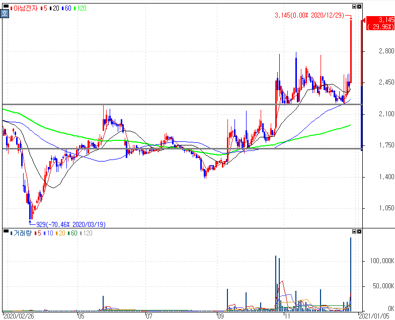 삼성전자 車 인포테인먼트 강화 소식 속 하만 공급사로 부각되면서 상한가를 기록한 아남전자 주가 입니다. 최근 자율주행 관련 첨단운전보조시스템(ADAS) 분야 인력을 차량용 인포테인먼트(IVI) 분야로 재배치하는 조직 재정비를 마치면서 차량용 인포테인먼트 시스템 '디지털콕핏'이 점유율을 높이고 있다는 해석과 함께 하만에 제조자 개발생산(ODM), 주문자 위탁생산(OEM) 방식으로 제품을 납품하는 것이 부각된 아남전자 입니다. 차트상 흐름에서는 그동안 탄탄한 흐름을 보였다는 것을 쉽게 알 수 있는데 단순 차트만 볼 것이 아니라, 산업 및 재료 등을 함께 보아왔다면 좋은 결과를 이끌어 낼 수 있는 종목이죠.