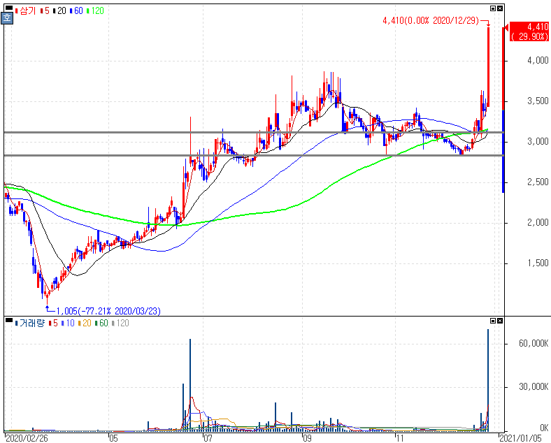 전기차 테마 상승 속 전기차용 모터하우징 사업 재편 계획 승인에 상한가를 기록한 삼기 주가 입니다. '삼기오토모티브' 에서 '삼기'로 사명변경을 했습니다. 사명변경을 하기전부터 삼기오토모티브 관계 업무선에서는 "삼기, 삼기"로 자주 불렸던 것으로 아는데 주식시장에서도 실제 '삼기'로 불리게 되네요. 삼기는 미래차 산업에 빼놓을 수 없는 종목으로 사실 자세한 설명이 필요 없는 종목이기도 합니다. 다만 그 타이밍에 대해서는 여러분들이 분석해보고 연구해 볼 필요는 있습니다. 본인이 안정적이고, 미래지향적으로 보는 종목들은 잘 추려놓고 적절한 타이밍에 활용할 수 있도록 잘 정리하시길 바랍니다.