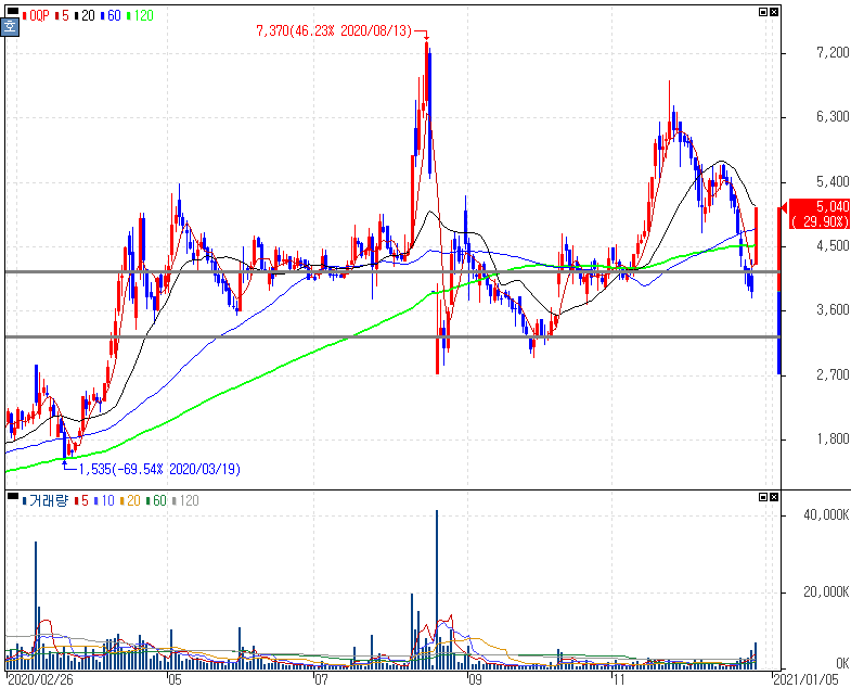| 1월4일 오늘의상한가종목 이유·원인 현대위아 SK이노베이션우 대원전선 경인전자 퀀타매트릭스 주가 외 (0) | 2021.01.04 |