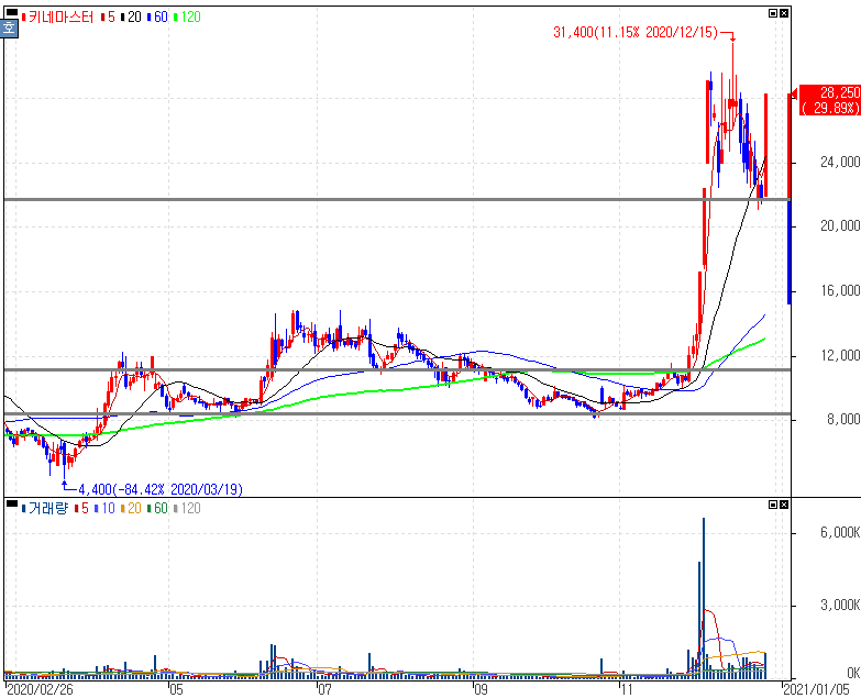 경영권 매각 추진 기대감 지속에 상한가를 기록한 키네마스터 주가 입니다. 최대주주가 솔본인 키네마스터는 지난 12월초부터 경영권 매각에 대한 소식은 있었습니다. 아시는 분들은 아시겠지만 모바일 동영상 편집앱 등과 관련한 사업을 영위하다보니 세계적으로 인기 소셜 틱톡, 페이스북, 유튜브 등과 연관성으로 기대감이 이어지고 있는 분위기입니다. 그러나 여전히 구체적으로 새 주인이 누가 될 것이라는 윤곽이 드러나지 않은 상황입니다.