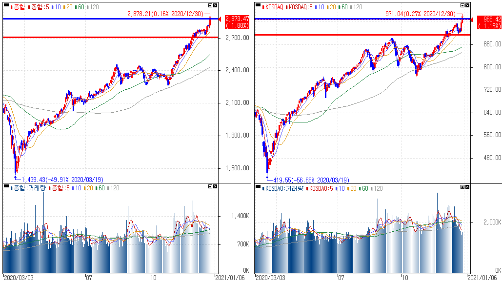 금일 코스피 지수는 +1.88% 상승한 2,873.47에 마감하였고, 코스닥 지수는 +1.15% 상승한 968.42에 마감하였습니다. 계속 상승장 분위기가 연출되고 있습니다. 재차 말씀드리는 부분으로는 본인의 투자원칙을 반드시 명심해야 한다는 부분입니다. 상승장에서는 수익본다는 욕심에 고삐가 풀리니 조심해야죠.