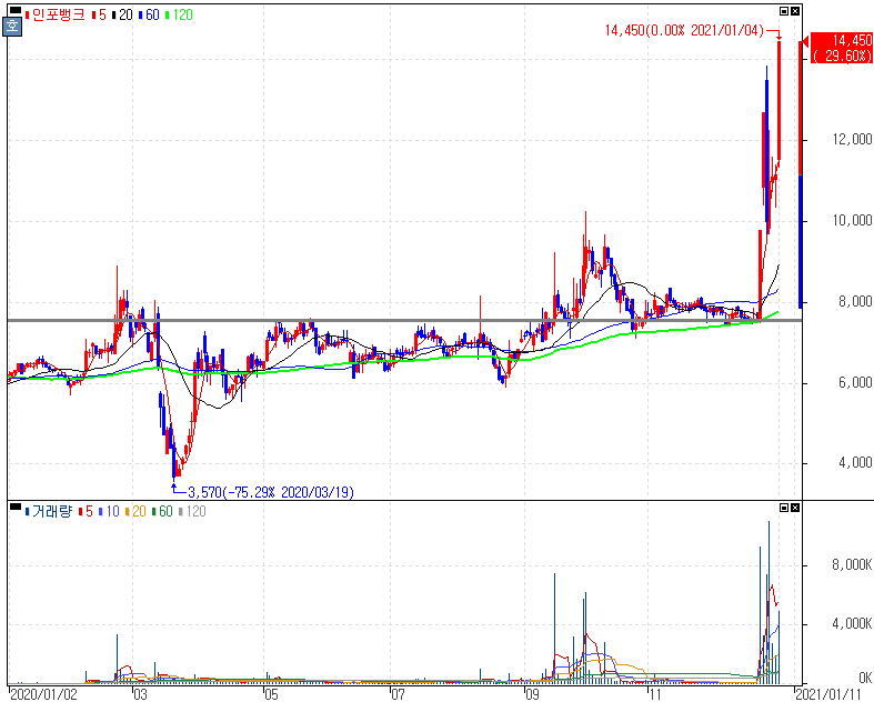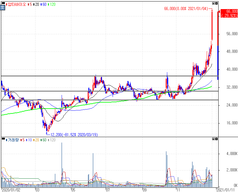 코로나19 치료제 APX-115, 美 FDA 2상 임상시험IND 신청에 상한가를 기록한 압타바이오 주가 입니다. JP모건 컨퍼런스가 이번달 일정으로 있는데 코로나19 치료제로도 부각이 된 압타바이오 입니다. 재료도 중요하지만, 각종 지표를 통해서 분석하고자 하시는 분들은 공부하실 때 참고해보실 수 있는 종목인 만큼 지난 2020년 흐름을 공부해보시길 바랍니다.