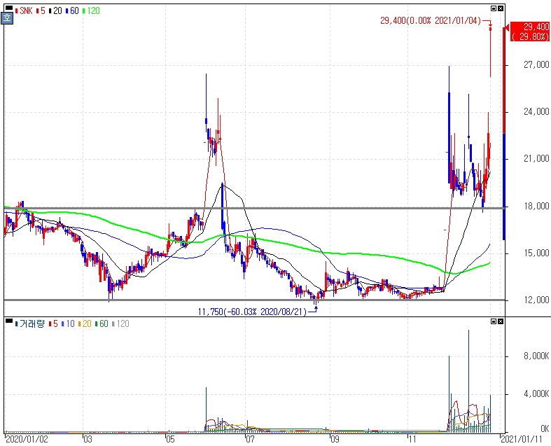 인수 예정사 EGDC, 외국인투자등록증 발급 완료 소식에 상한가를 기록한 SNK 주가 입니다. SNK하면 '킹 오브파이터즈'가 떠올라야 합니다. 그동안의 SNK는 중국계 최대주주가 경영권을 인수하면서 종목에 대한 이미지는 지난 5월와 같은 이력을 남겼죠. 그러나 사우디아라비아 왕세자 빈 살만이 이끄는 미스크 재단이 인수를 위한 외국인투자 등록증까지 발급되면서 재차 부각을 보인 모습입니다.