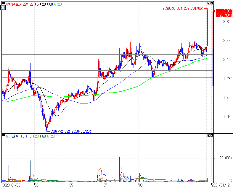 종합 물류 테마 상승 속 삼성SDI 물량 전담 수혜 기대감에 상한가를 기록한 한솔로직스틱스 주가 입니다. 삼성SDI의 중·대형 2차전지 물동량 증가로 한솔로직스틱스가 추가 성장할 것이라는 전망 소식이 나왔는데 지난해 말부터 삼성SDI가 헝가리 공장에 1조 2,000억원 규모의 추가 투자를 진행중이면서 한솔로직스틱스 헝가리 법인이 유럽향 물류를 총괄할 것이라는 시각이 있습니다.