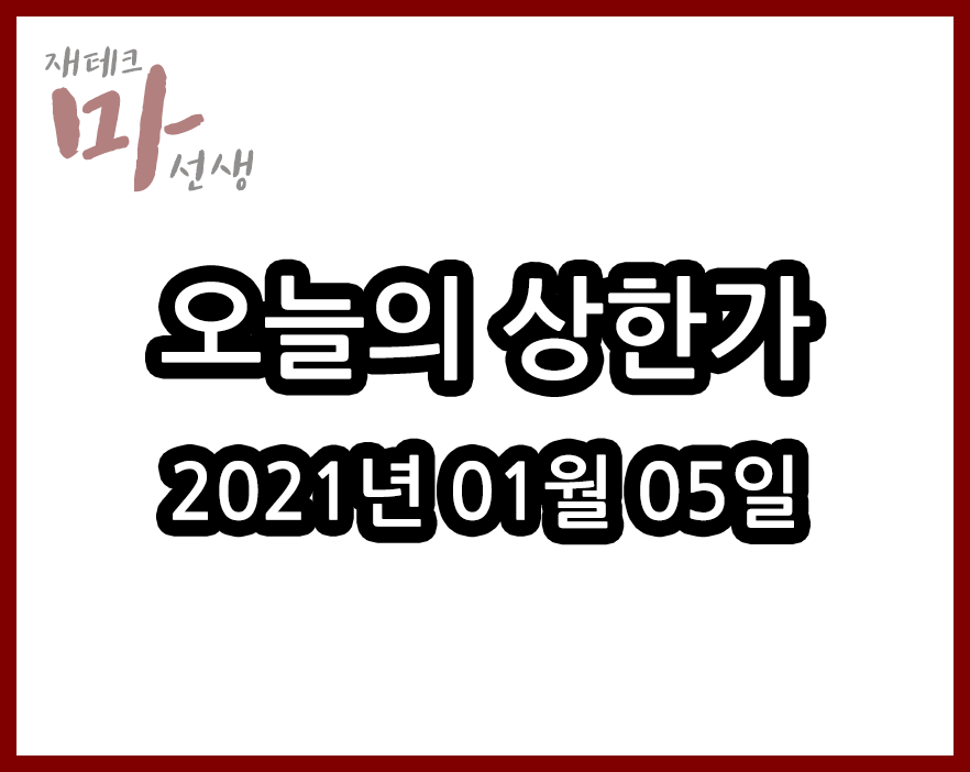 2021년 01년 05일 오늘의 상한가 종목 이유·원인에 대해서 보도록 하겠습니다. 뉴욕도 변종 코로나19가 확인 되고, 각국의 봉쇄 조치 강화 소식까지 나오고 있습니다. 또한 미국에서는 조지아주 상원의원 결선투표에 주목이 되면서 새해 첫 미국 증시는 -1%대 하락으로 마감하였습니다.