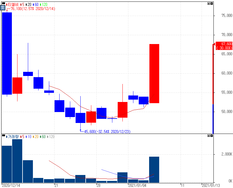 재료 미노출 속 2020년 하반기 신규상장 종목군 상한가를 기록한 티엘비 주가 입니다. 2020년 하반기 신규상장 종목군들의 활약은 새해에도 계속 이어지고 있습니다. 어제도 2020년 하반기 신규상장 종목 테마들이 충분히 상승을 보여줬는데 오늘 상한가를 기록한 티엘비 외에도 클리노믹스가 +11.26% 상승마감하였습니다. 이러한 신규상장 종목들의 양상 파악에 본 기업이 어떤 사업을 영위하는지 기본적으로는 반드시 알고 있어야 합니다. 티엘비는 대덕전자에서 분사된 PCB 제조기업으로 D램, SSD 수요에 민감한 종목인 만큼 코로나19 시대에 수혜를 받는 업체이기도 합니다. 새해에도 지난 2020년 하반기 신규상장 종목들의 부각을 보인 만큼 한번씩 점검해보는 것도 좋습니다.