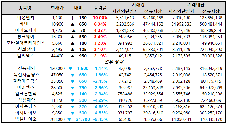 장 마감 후 단기과열종목 지정예고 공시
