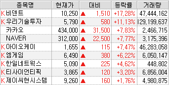 비트코인 4만달러 돌파 소식과 넥슨의 김정주 대표가 가상화폐거래소 빗썸 인수 추진 소식이 나왔는데 김정주 NXC 대표가 국내 1위 가상화폐거래소 빗썸을 약 5,000억원에 인수하는 방안을 추진하고 있다는 소식이 나오면서 비덴트, 우리기술투자, 아이오케이 등 가상화폐 관련주, 넥슨코리아 자회사 넥슨지티(장중 +24.54% 상승 후 +6.32% 상승 마감) 등이 상승을 보였습니다.