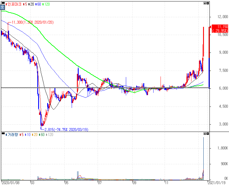 계속해서 '쿠팡'과 관련한 종목들이 계속 부각이 되는데 인포마크 경우 손정의 회장의 소프트뱅크가 과거 쿠팡에 27억달러 투자 사실이 다시 떠오르면서 인포마크 2대주주 소프트뱅크 계열사(소프트뱅크벤처스)가 부각되었습니다.