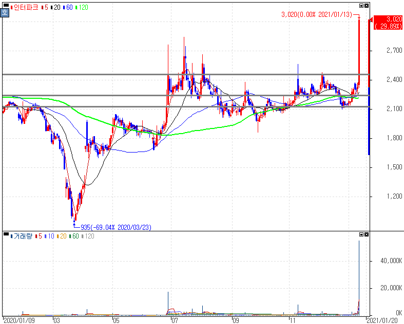 코로나19 백신 접종 현실화에 따른 투자심리 개선 등에 여행 테마 상승 속 상한가를 기록한 인터파크 주가 입니다. 그동안 코로나19 사회적 거리두기로 인해 직격탄을 맞은 화장품, 패션, 여행 등의 업종인 컨택트 업종이 정부의 백신 접종 일정을 구체화하면서 관심이 집중되고 있습니다. 물론 변이 바이러스나 코로나19 종식된 것이 아닙니다만, 주가 차트흐름도 공부하시는 분들은 복기해두시길 바랍니다.