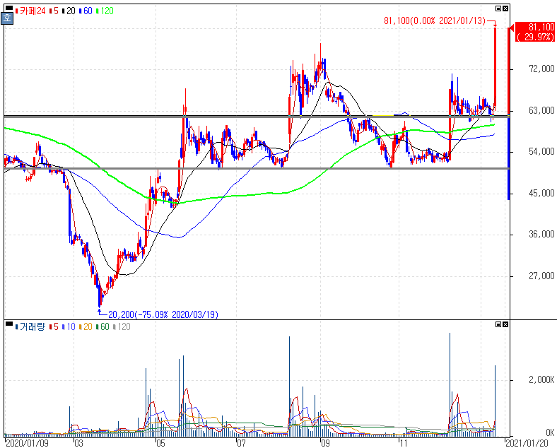주당 1주 배정 무상증자 결정에 상한가를 기록한 카페24 주가 입니다. 무상증자와 관련해 부각을 보였으나 글로벌 전자상거래 플랫폼 등 온라인 비즈니스 관련 사업을 영위한다는 점을 잘 숙지해놓는 것도 좋습니다. 종목명이 쉬운만큼 쉽게 봐두시는 것도 좋습니다.