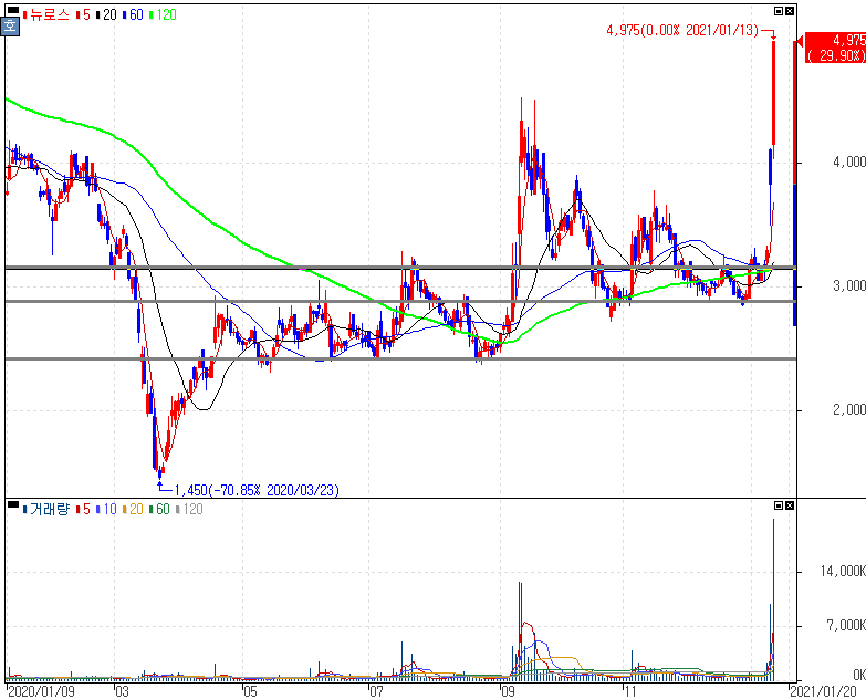 수소차 테마 상승 속 中 국유기업 등 대상 177.34억원 규모 유상증자 결정 모멘텀 지속에 상한가를 기록한 뉴로스 주가 입니다. 지난 흐름들이 기술적인 접근으로 분석이 충분히 될 수 있는 종목이기도 합니다. 이번 중국 국유기업 소식 외 수소차 테마로도 부각이 되는 종목인 만큼 복기하시는 분들은 잘 체크해두시길 바랍니다.