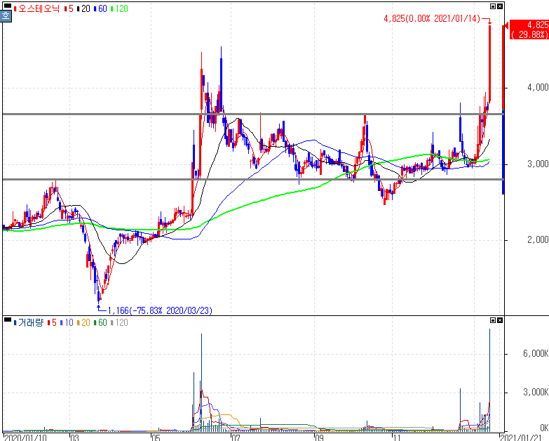 췌장암 진단키트 올해 개발 소식 기대감에 상한가를 기록한 오스테오닉 주가 입니다. 오스테오닉은 골절합용 판과 나사 등을 개발, 제조, 판매하는 사업을 영위하는 업체입니다. 그런데 지난 6월에 췌장암 진단 및 치료 시장에 진입하면서 올해 췌장암 관련 진단키트 개발 성과가 나올 것이라는 전망을 가지고 있었던 만큼 기대하고 있는 투자자들이 많이 있습니다. 오스테오닉 계열사 아큐레시스바이오에서 췌장암 조기 진단을 위한 혈액기반 진단키트 및 췌장암 항암 치료제 기술이전을 2019년에 체결하면서 오스테오닉과 아큐레시스바이오가 췌장암 관련 사업에 박차를 가하고 있음은 확실하다고 볼 수 있습니다.