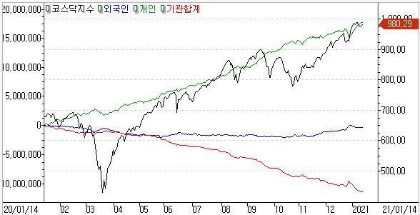코스닥 개인 +901억 / 외국인 +509억 / 기관 -957억