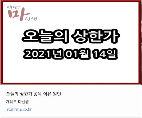 2021년 01월 14일 오늘의 특징주 마선생 시간입니다. (베타·테스트 게시물 입니다.)