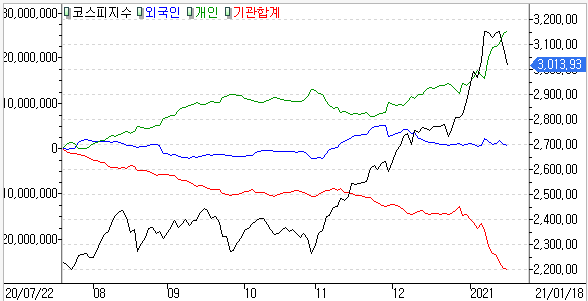 개인 +5,156억 / 외국인 -2,206억 / 기관 -2,730억