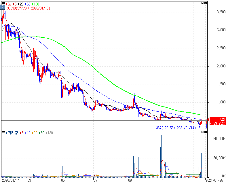 파산신청설 해소와 60억원 규모 스마트팜 식물공장 시설공사 계약 체결 소식에 상한가를 기록한 GV 주가 입니다. LED 조명의 제조와 판매업을 주사업으로 영위하는 업체입니다. 얼마전 파산신청설이 나오면서 거래가 정지됐지만, 거래재개가 되고, 60억원 규모 스마트팜 식물공장 계약 체결건이 나오면서 파산신청설이 해소되는 분위기 속에서 나온 상한가입니다.